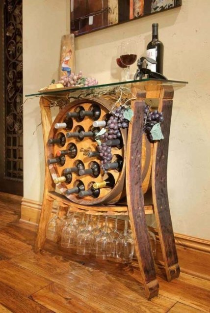 Чудесное превращение винной бочки в функциональную винную стойку со стеклянной столешницей.