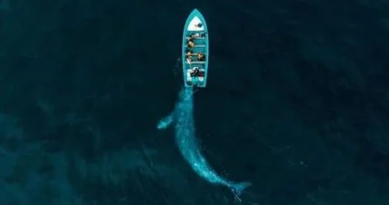 Победитель в категории "Природа": серый кит толкает лодку с туристами