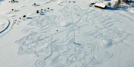 Финский художник с помощью добровольцев создал гигантский узор из снега на поле для гольфа (фото, видео)