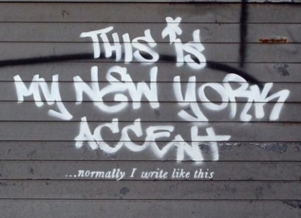 На следующий день граффити Бэнкси появилось в другом районе Манхэттена. Оно представляло из себя надпись, состоящую из двух частей. Первая, написанная шрифтом, популярным среди местных уличных художников, гласила: "Это мой нью-йоркский акцент". Вторая, выведенная печатными буквами: "...обычно я пишу вот так".