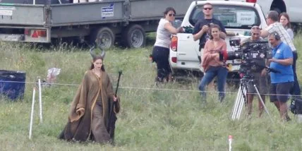 На снимках, сделанных во время съемок в Великобритании, можно разглядеть черный костюм Анджелины с головным убором, который венчают рога, такой же точно, как и у мультипликационной колдуньи. Губы актрисы накрашены ярко- красной помадой, глаза светятся, но при этом образ выглядит слишком красиво, чтобы его бояться.