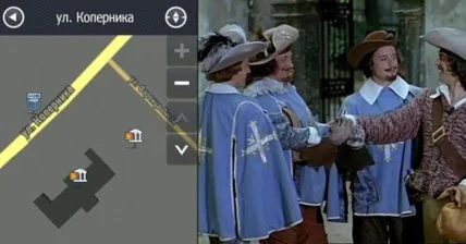 Знаменитая сцена из новеллы "Напарники", где положительный хипстер Шурик воспитывает тунеядца Федю на стройке, снималась на ул. Седова в московском районе Свиблово. Многие высотки, попавшие в кадр, уже снесли. Вообще, навигационные карты не рассчитаны на то, чтобы отображать, как изменился город. Зато они показывают расположение дорожных знаков и полезных объектов вроде заправок, СТО, больниц и гостиниц.