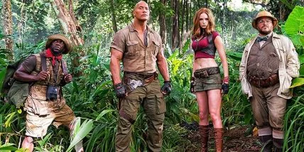 Формальное продолжение, но по факту практически ремейк знаменитой картины 1995 года. Четверо подростков остаются после уроков убирать школьную подсобку. Среди хлама они находят старую приставку с игрой под названием Джуманджи. Не зная, какие беды сулит это слово, ребята начинают играть. И переносятся в дикий и опасный мир джунглей, где становятся Дуэйном Джонсоном, Джеком Блэком, Кевином Хартом и Карен Гиллан. Чтобы вернуться в реальный мир и стать самими собой, им надо выполнить все задания, какие им подсунет Джуманджи.