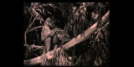 "Человек и обезьяна" - культурфильм, иллюстрирующий теорию Дарвина об эволюции видов. Картина снималась в Сухуми в 1930 году специально созданным для съемки научных и технических фильмов объединением "Техфильм" при кинотресте "Украинфильм". Натурные съемки проходили в Сухумском питомнике обезьян. К созданию картины приобщился известный оператор Иосиф Рона.