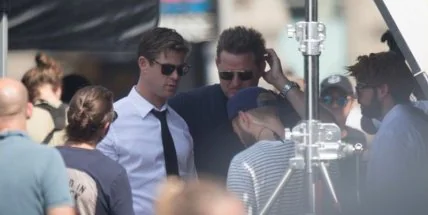 А теперь в сети появились первые фото со съемок нового фильма, действие которого развернется во вселенной "Людей в черном". Снимки появились на портале Just Jared, который известен своими кадрами с производства фильмов. На них можно увидеть звезду киновселенной Marvel Криса Хемсворта, который исполняет одну из главных ролей.