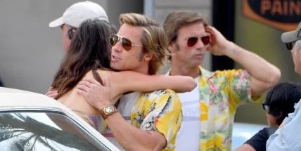 Соответственно, и образ Брэда Питта, в котором он предстает на последних кадрах со съемочной площадки, в стиле тех годов - футболка, джинсы, яркая рубашка и очки. На новых кадрах Питт выгядит помолодевшим и очень даже счастливым.