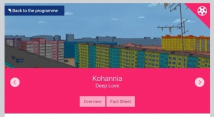 "Любовь" уже появилась на официальном сайте конкурса в перечне анимаций, участвующих в программе короткометражных лент. Интересно, что название на английском переводить не стали, а просто написали его латиницей - Kohannia. А снизу для понимания написали Deep Love ("Глубокая любовь").