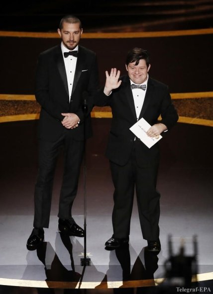 03:49 Шайа Лабаф и Зак Готтзаген представляют номинантов в категории "Лучший короткометражный фильм". Статуэтка досталась картине "Окно напротив".