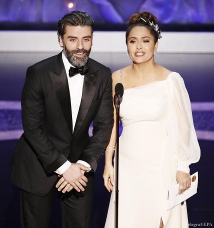 04.39 На сцене появились актеры Сальма Хайек и Оскар Айзек. Они представили номинантов в категории "Лучший монтаж звука (sound editing)". "Оскар" получила кинокартина "Ford против Ferrari"!