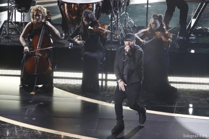 04:35 На сцене зажег Эминем, исполнив композицию "Lose Yourself", ставшей саундтреком к фильму "8 миля". Зал аплодирует стоя.