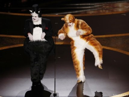 05.17 На сцену вышли Джеймс Корден и Ребел Уилсон в забавных костюмах кошек, чтобы представить номинантов в категории "Лучшие визуальные эффекты". В категории "Лучшие визуальные эффекты" победу одержал фильм "1917".
