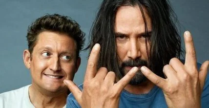 В сети выложили свежие кадры американской научно-фантастической комедии "Билли и Тед 3", главных героев которых играют Киану Ривз и Алекс Уинтер.