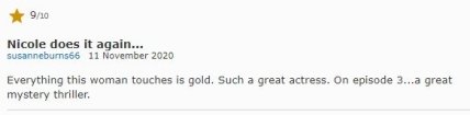 "Так много мусора, но The Undoing качественный. Хорошо сделанная, хорошо сыгранная и захватывающая сюжетная линия. Нам нужно больше качественных шоу, подобных этому"