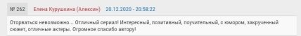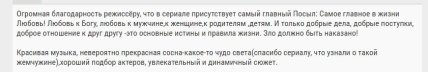 «Как в индийском кино», «Оторваться невозможно... Отличный сериал!», «Шлак», «Пожадничали на реквизите», «Огромная благодарность режиссёру», «Играют все прекрасно», «Бредятина» - пишут в сети.