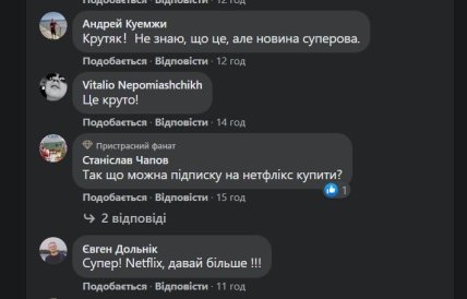 Украинские киноманы с восторгом приняли подобную новость, о чем говорят позитивные отзывы под новостями с данной информацией.