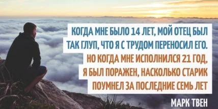 Когда мне было 14, мой отец был так глуп, что я с трудом переносил его; но когда мне исполнился 21 год, я был изумлен, насколько этот старый человек поумнел за последние 7 лет.
