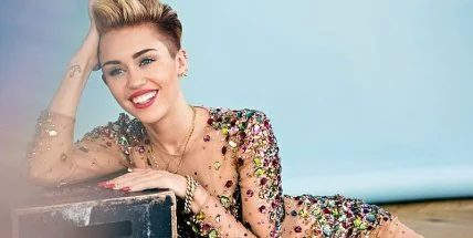Откровенный снимок показывает обнаженную Майли Сайрус в образе феи с крыльями, которая стоит рядом с туалетом и раковиной в помещении, что кажется похожим на тюремную камеру. На фотографии много розового цвета и цветов, а на самой поп-певице создали боди-арт, украшенный пайетками и розовыми кристаллами Swarovski.