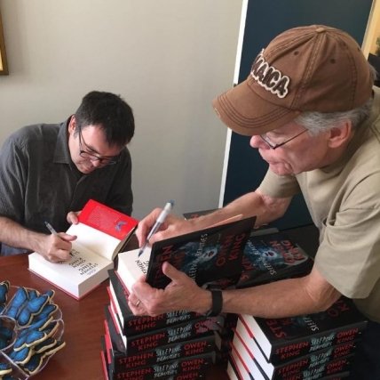 Семейный подряд: Стивен и Оуэн Кинги подписывают свою новую книгу "Спящие Красавицы", которая вышла 26 сентября в США и Великобритании.