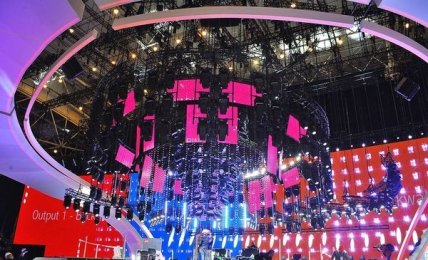 Он подчеркнул, что центральная часть сцены от арки до экрана - подвижная, что поможет создать для каждого конкурсанта уникальный фон для выступления.