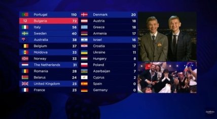 Болгария дает 12 баллов Австрии. Исландия отдает максимальный балл Португалии.