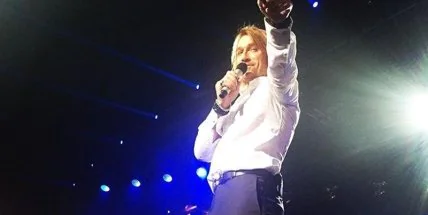 Исполнитель не заставил долго ждать поклонников своего выхода на сцену. Уже через полчаса после заявленного в афишах времени красивый, улыбчивый, голубоглазый певец появился перед поклонниками.