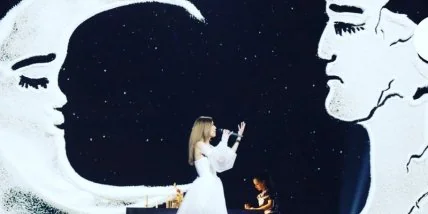Украинка иллюстрировала "снегом" свое видение истории, рассказанной в песне. Процесс появления картины транслировался на большом экране так, чтобы за ним могли наблюдать и публика в зале, и телезрители.
