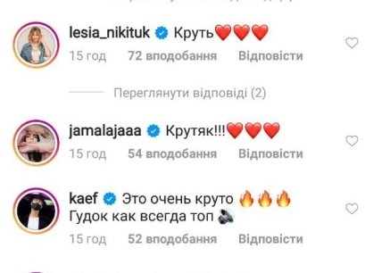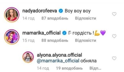 Многие украинские звезды также поддержали Алену. Джамала, Надя Дорофеева, МамаРика, Леся Никитюк оставили свои восторженные отзывы.
