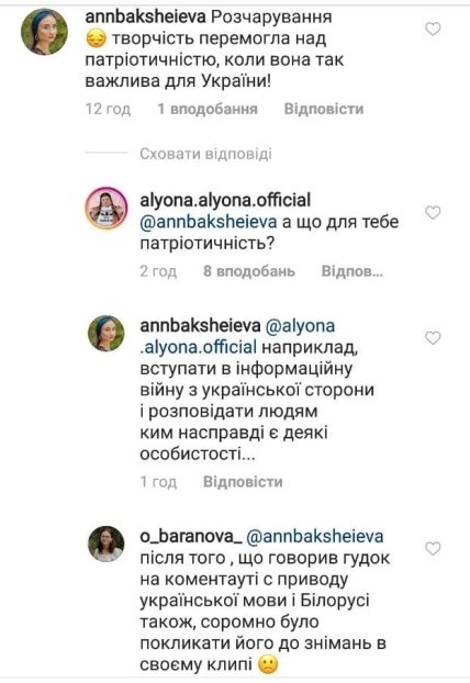 Но также есть и вторая сторона медали. Среди фанов Алены присутствуют и ярые патриоты Украины, которым не пришлась по нраву совместная работа с российским шоуменом.
