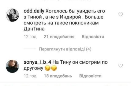 «Хотелось бы увидеть его с Тиной, а не с Индирой», «Что это за девка?», «Бредятина», «Кто эта китаянка?», «Скучно», «Не с Тиной, вот и плохо» - пишут другие.