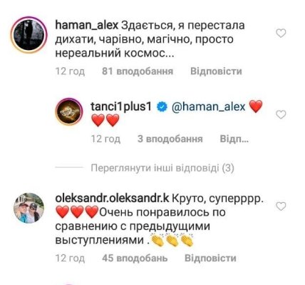 «Какой же у Дана крутой тембр и голос ,Дан гений и талантище», «Очень красивая пара! Песня магичная, хочется переслушивать как и все песни Дана!», «Песня прекрасна исполнение супер», «Шикарная песня , лучший момент за весь выпуск», «Супер песня и музыка» - пишет первый «лагерь» поклонников.