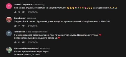 Поклонники приняли новую композицию с восторгом. В комментариях посыпалось множество положительных отзывов: “Невероятно”, “Очень красиво”, “Я плакала”, ” Шикарная песня...шикарный танец... Мурашки... Бравоооооо!”, “До мурашек”, “Очень лирично”.