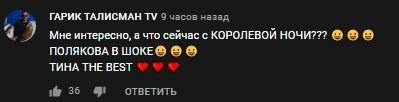 Кроме этого, их также сильно удивляет новые образы Тины, а некоторые даже припомнили слова Оли Поляковой о "плакальщице на похоронах". Видно, певица все же решила отойди от "грустного репертуара".