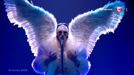 22:48 - представитель Норвегии TIX в образе ангела с большими крыльями вышел представлять свою страну с песней "Fallen Angel".