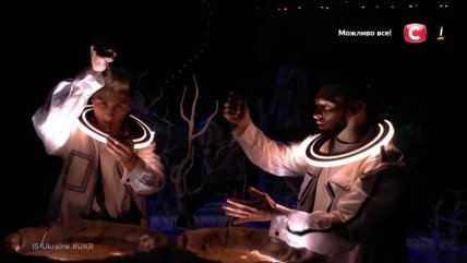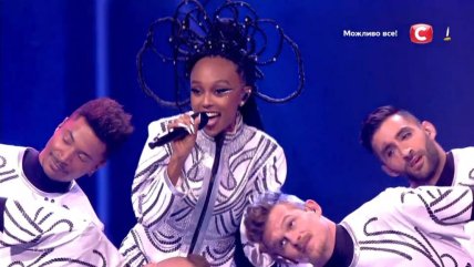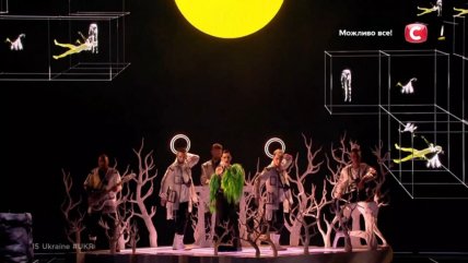 23:14 - на сцене появилась мистическая группа из Украины Go_A. Стоит отметить, что зал сорвался овациями еще до выступления. Представители Украины зашумели на арене Ахой украинскими народными мотивами и песней "SHUM".