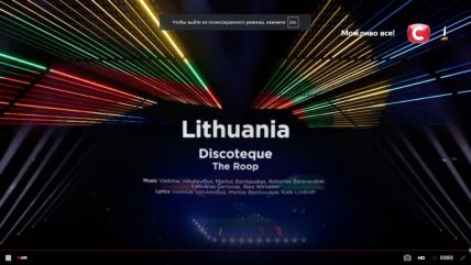 22:08 - на сцену вышли первые участники - группа из Литвы The Roop с песней "Discoteque". Стоит отметить, что группа трижды "штурмовала" национальные отборы в своей стране.