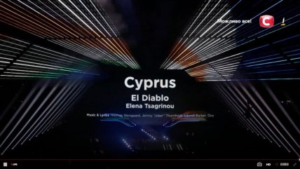 22: 43 - далее на сцене появляется одна из фавориток букмекеров Elena Tsagrinou из Кипра с песней "El Diablo", которая посвящена токсичным отношениям.