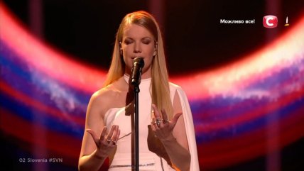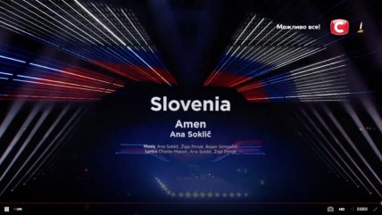 22:13 - представительница Словении Ana Sokliс исполнила песню "Amen". Девушка победила в своем национальном отборе с разницей более чем 600 баллов.