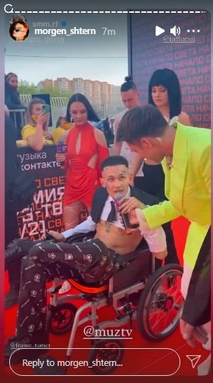 На коляске и с обрезанным костюмом: Моргенштерн отличился в Москве (видео)