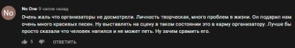 Отмечается, что разобрать слова артиста было невозможно, и спустя некоторое время вокалиста увели со сцены.