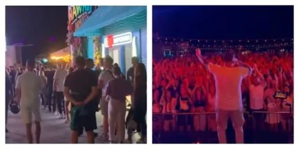 Еще до начала концерта на входе в клуб образовалась огромная очередь поклонников российского артиста. Присутствующие не придерживались дистанции и были без масок.