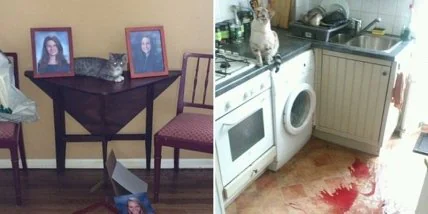 Приколы про котов или смешные коты. Конечно, в подборке встречаются не только коты, но и кошки, но не будем делить этих позитивных существ по половому признаку. Приколы про котов - это всегда мило, классно и позитивно. А если учесть, что в 50% семей живет коте, то можно смело сказать, что фото приколы про смешных котов понравятся почти всем. Эти усатые проказники были пойманы с поличным — прямо во время совершения преступления. При этом всем своим видом они показывают, что не произошло ничего необычного. Приятного просмотра и хорошего настроения!