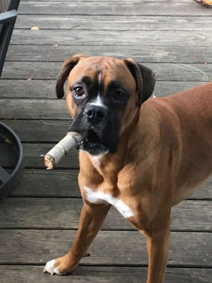 "Боксёр моих родителей и его любимый мячик"