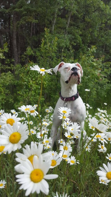 Этот боксёр изо всех сил наслаждается полем с ромашками