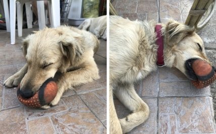Когда заснул с мячиком в пасти