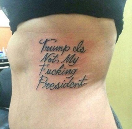 Этой женщине повезёт, если Дональда Трампа переизберут, потому как в таком случае её татуировка пробудет актуальной хотя бы ещё какое-то время.