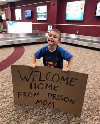 Мой муж — идиот. Когда я сошла с самолета, мой сын держал вот такую табличку - "С возвращением из тюрьмы, мама"
