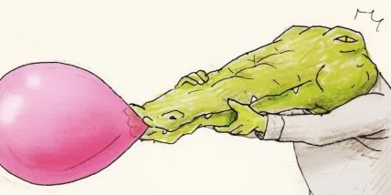 И рептилиям не позавидуешь. Ведь за что бы они ни взялись, всему будет мешать вытянутость их морды. Это смешная серия рисунков, вы не подумайте, но крокодилов чуть-чуть жалко. Уж лучше им оставаться в верховьях Нила.