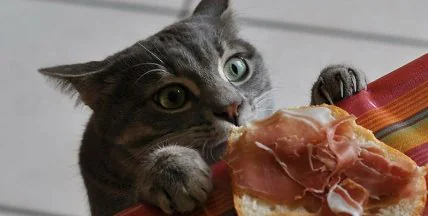Ах, коты и кошки, прекрасные пушистые создания, которые мурчат и просят почесать их за ушком… Ага, конечно! Стоит вам отвернуться, как они уже строят против вас козни. Например, как лишить вас только что приготовленного обеда/завтрака/ужина. Эти усатые воришки были пойманы с поличным — прямо во время совершения преступления. Хозяин, будь бдителен. Ведь дело не только в том, что ты останешься без еды, но и в том, что твой любимый Барсик может пострадать от собственного любопытства — многие кошки хватают еду со стола инстинктивно, даже не подозревая о том, что им будет трудно ее переварить. В общем, держите котов подальше от столов.