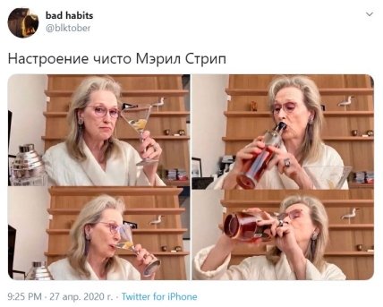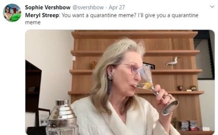 В одном из кадров мюзикла Netflix заметил довольно актуальную ситуацию для 2020 года. И на фоне этого стримминговый сервис решил создать мем, главной героиней которого и стала Мерил Стрип. Новый прикол сервис разместил в Инстаграм.