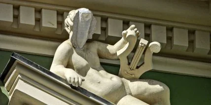В Одессе скульптура на фронтоне одного из фасадных окон дома Руссова на Садовой улице лишилась лица и раскрыла свое пластиковое нутро.
